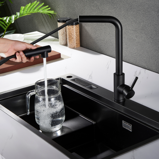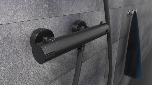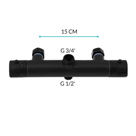 Robinet de douche thermostatique noir 15cm (2 trous)